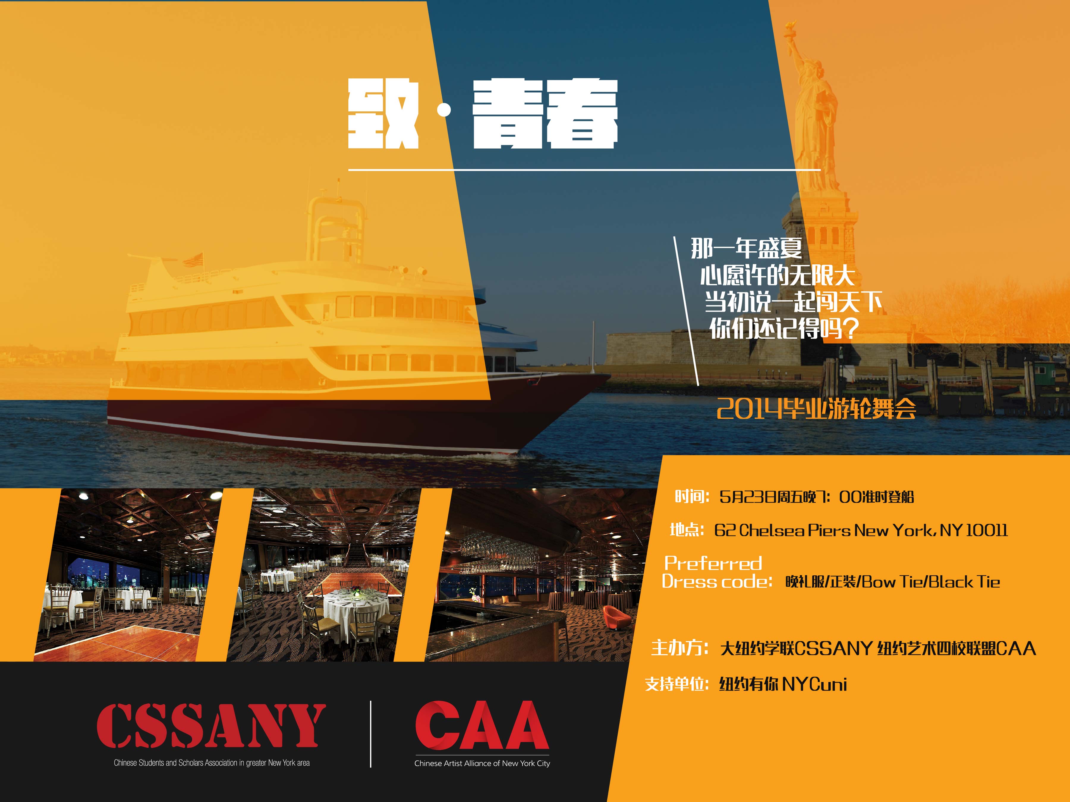 想要怎样去怀念我们即将挥别的纽约,终将逝去的青春?来加入我们一年一度的豪华游轮毕业舞会吧,你我华衣美裳,牵手作舟,漫步在红毯上,畅游在哈德逊河,忘情的哭,尽情的笑,在专业摄影师的见证下,再一次重温那些年我们或是拥有,或是辜负过的美食,美景,和深深情意。